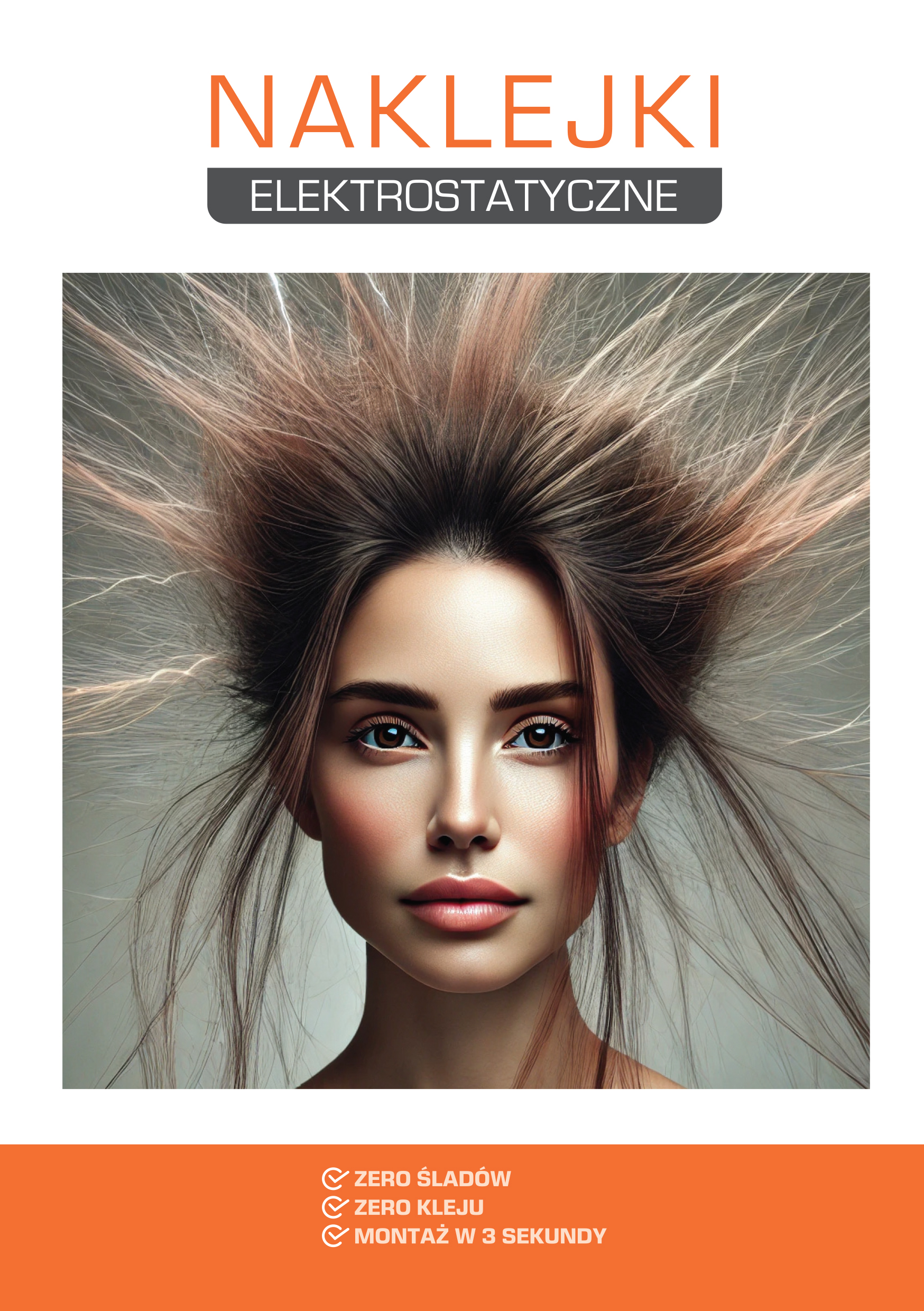 Jesteśmy prekursorami dwustronnych naklejek elektrostatycznych. Po przyklejeniu ich na szybę, grafika jest widoczna z obu stron, co daje efekt witraża. Światło przechodzące przez te naklejki daje niepowtarzalny efekt w dzień wewnątrz i wieczorem przy zapalonym świetle po zewnętrznej stronie okna czy witryny sklepowej. Dzięki zastosowaniu naładowanej elektrostatycznie folii polipropylenowej PP naklejki elektrostatyczne mogą trzymać się każdej suchej powierzchni bez kleju. Najczęściej znajdują zastosowanie w komunikacji marketingowej oraz w przestrzeni biurowej. Folia spełnia założenia Eco friendly, ponieważ w 100% może zostać poddana recyklingowi. Naklejki elektrostatyczne są idealnym rozwiązaniem wszędzie tam, gdzie liczy się szybki montaż i demontaż oraz tam gdzie nie można zastosować żadnej innej formy reklamy z obawy przed zniszczeniem powierzchni.