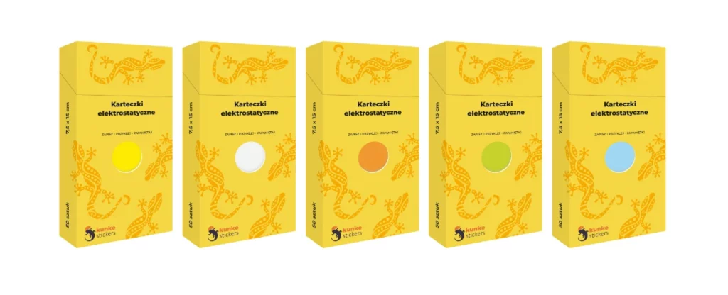- Elektrostatyczne kartki dostępne są w wielu kolorach, idealne do zapisków i notatek w biurze, domu i szkole.